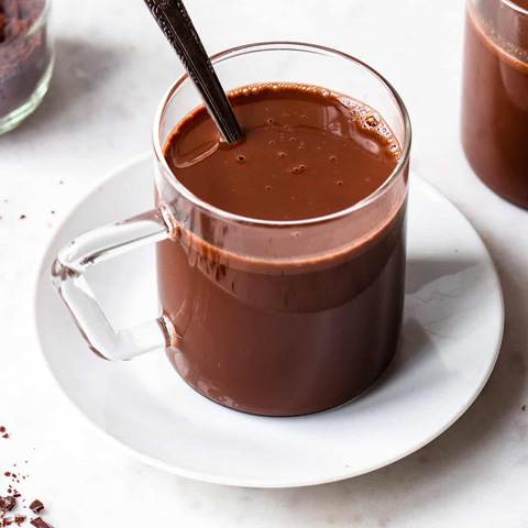 Rich, creamy cocoa garnished with chocolate for a cozy indulgence.
